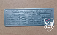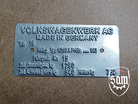 2: 1952 - 1964 VW Volkswagen metal vin name plate fits Ghia Bug Bus Beetle Split KDF Oval 3: Volkswagen Beetle Type 11 Made in Western Germany vin data information plate 4: Volkswagen Beetle Type 14 Made in Germany vin data information plate 5: Amag Lauf Plate |