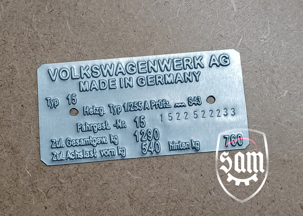 | 1:1945 - 1952 VW Volkswagen vin name ID plate Split Beetle Bug Type 1 T1 Zwitter
