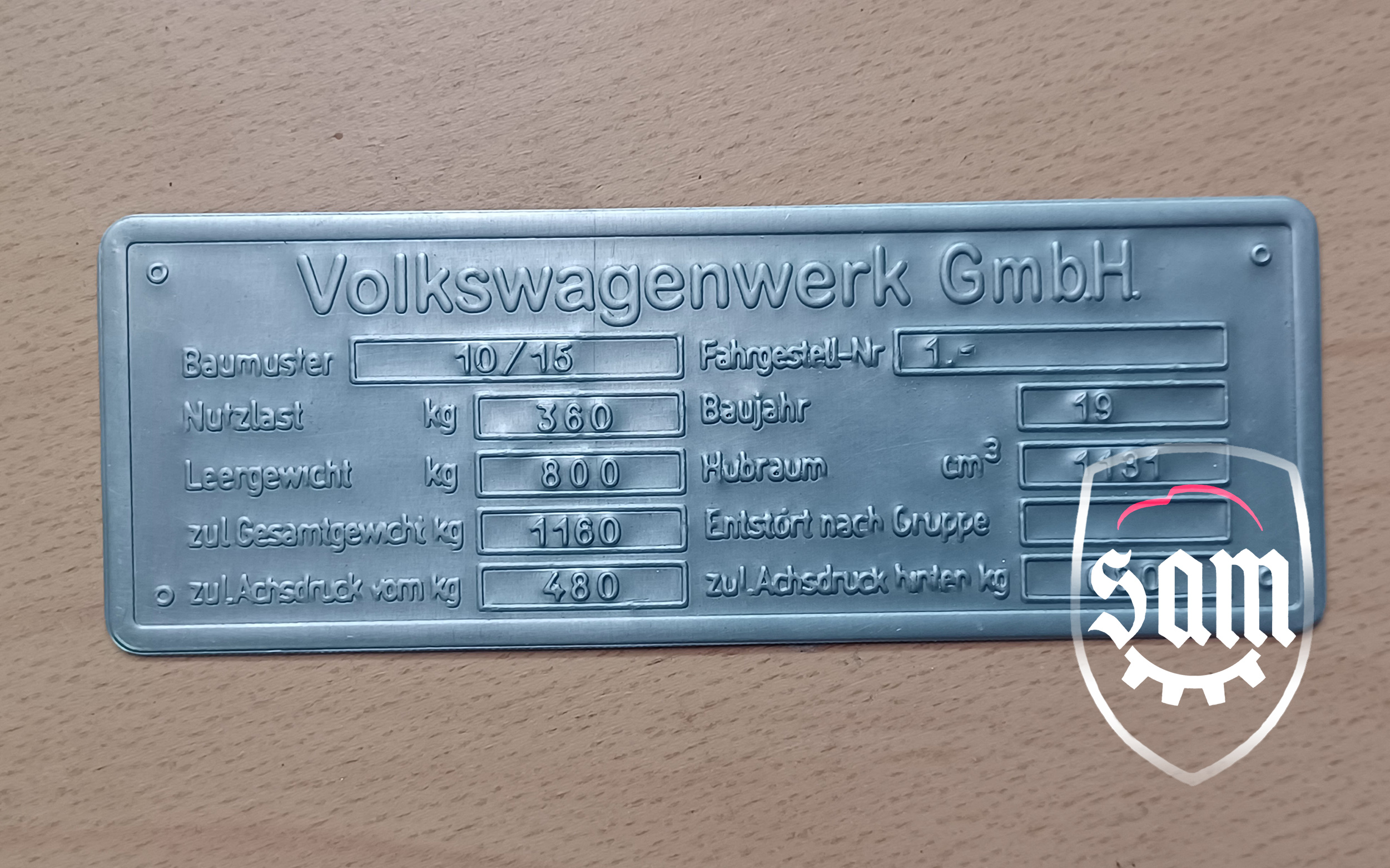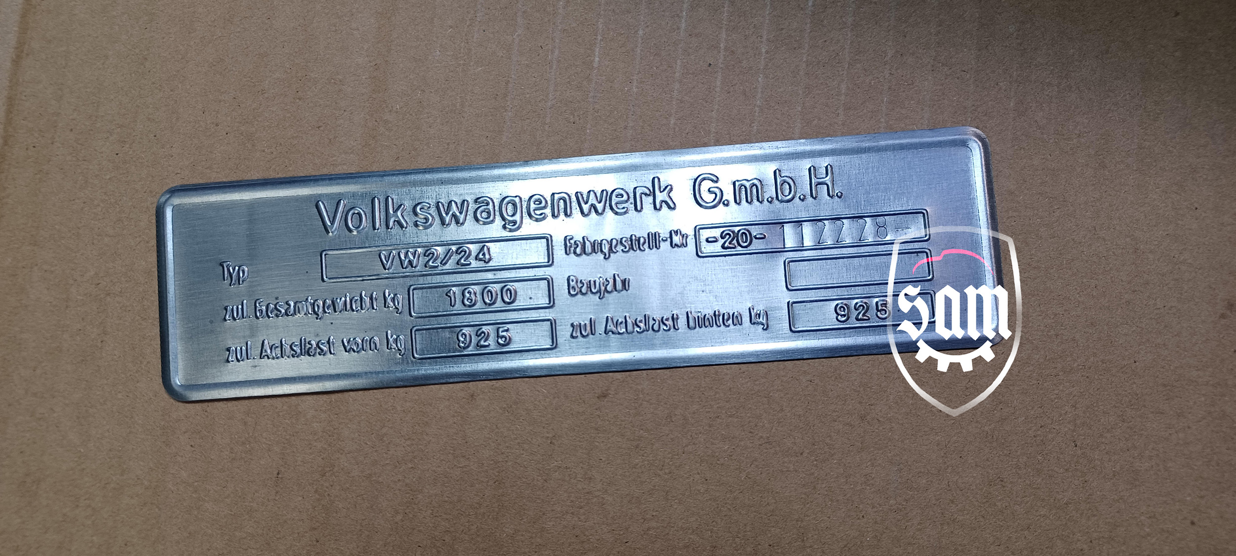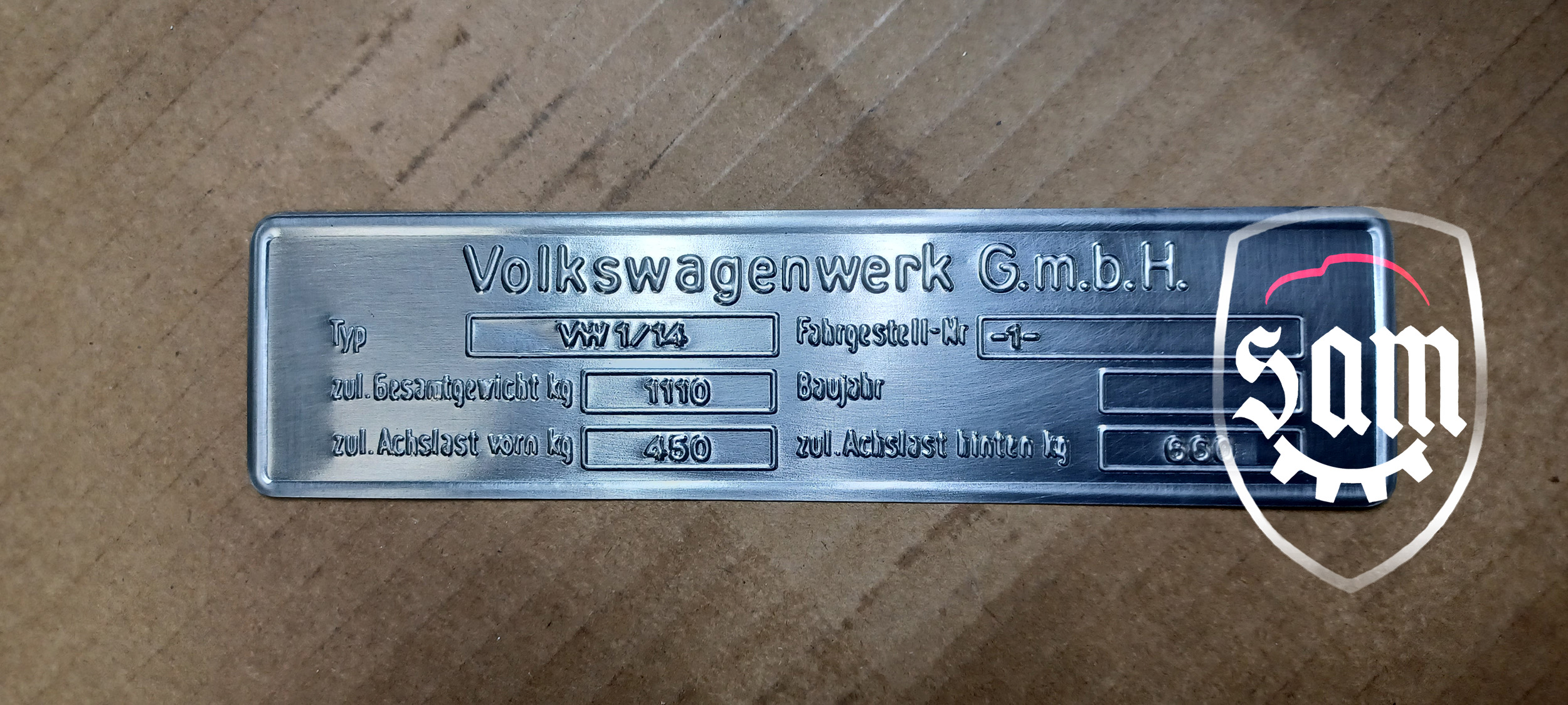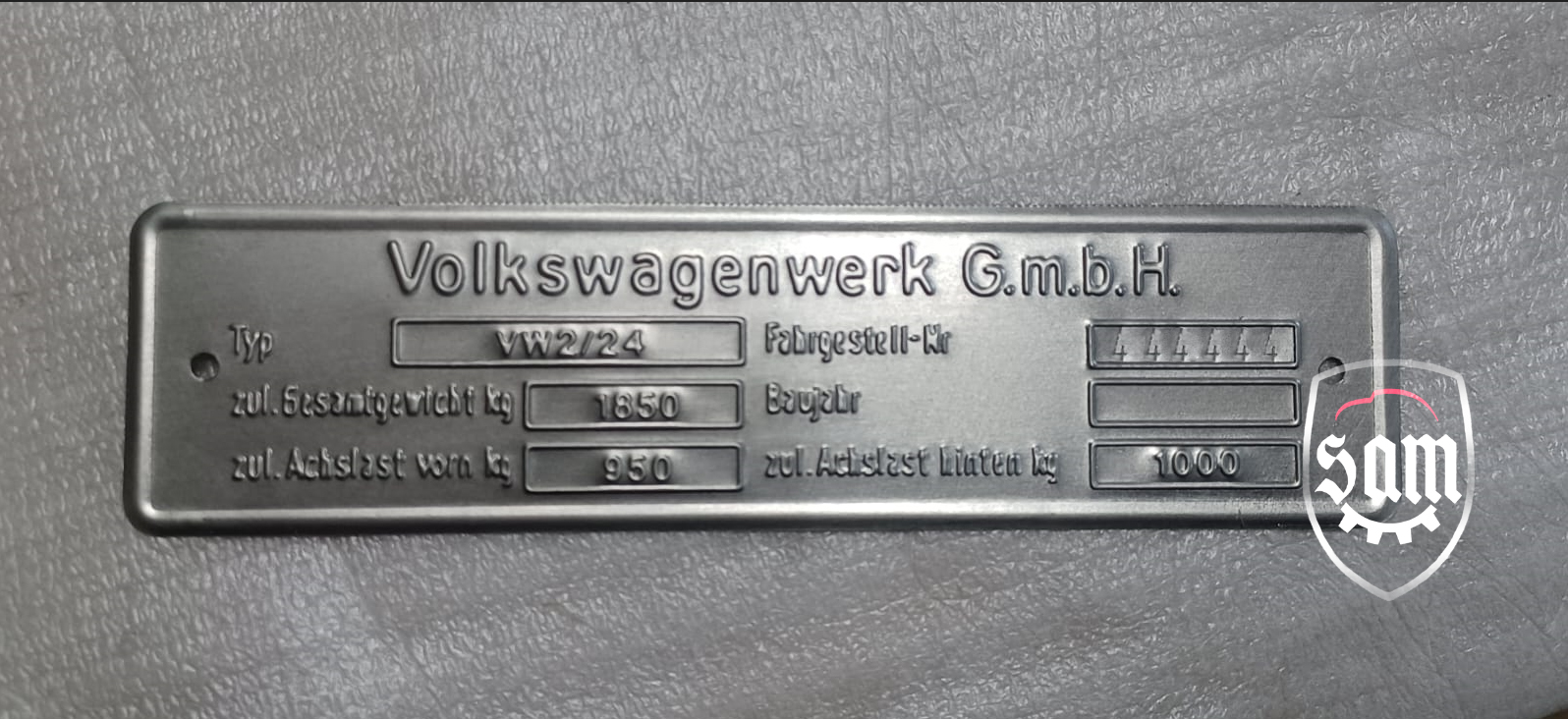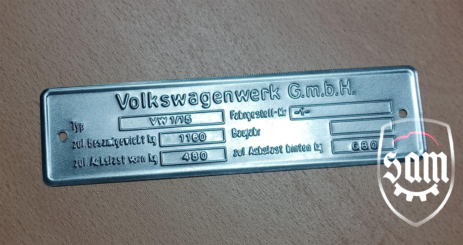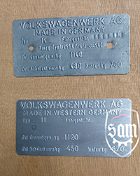 | 1:1945 - 1952 VW Volkswagen vin name ID plate Split Beetle Bug Type 1 T1 Zwitter