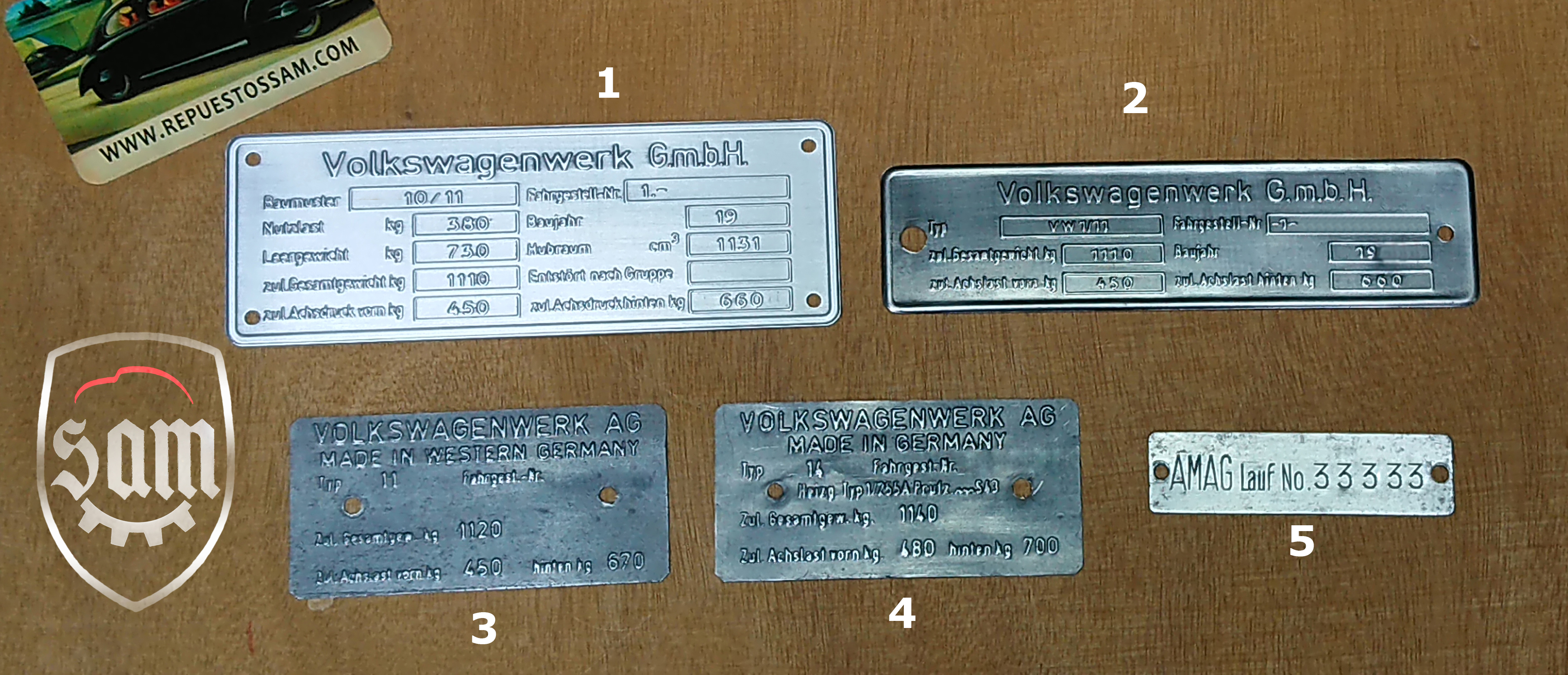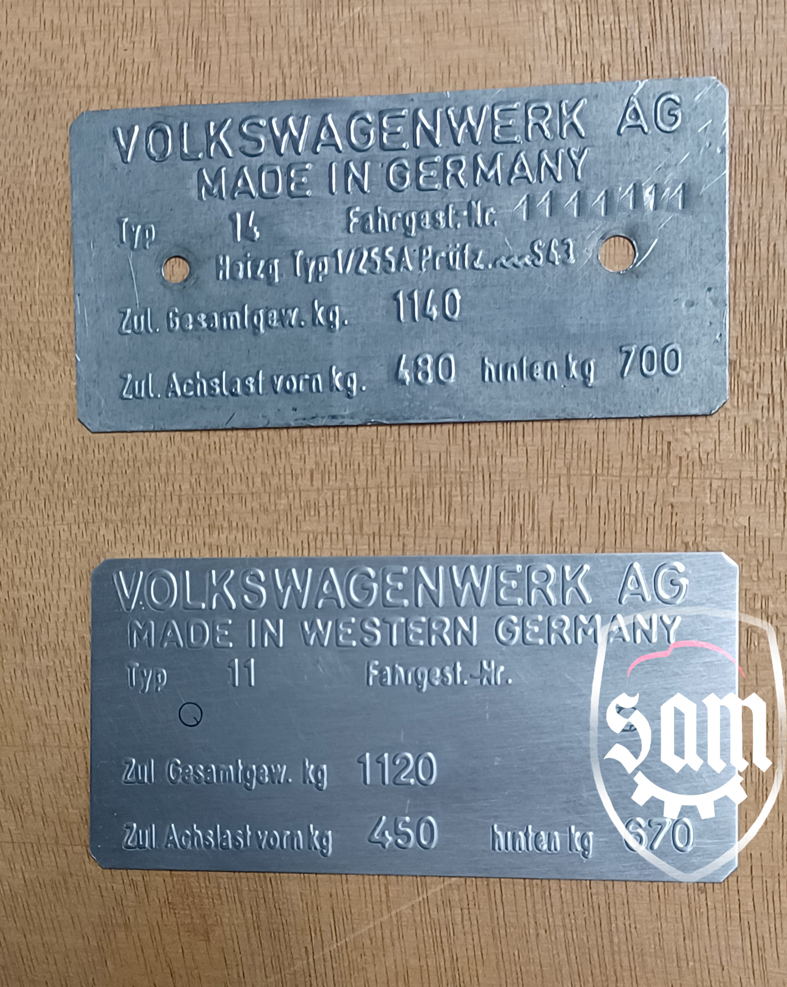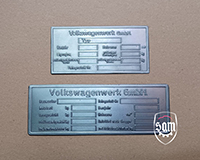 2: 1952 - 1964 VW Volkswagen metal vin name plate fits Ghia Bug Bus Beetle Split KDF Oval 3: Volkswagen Beetle Type 11 Made in Western Germany vin data information plate 4: Volkswagen Beetle Type 14 Made in Germany vin data information plate 5: Amag Lauf Plate |